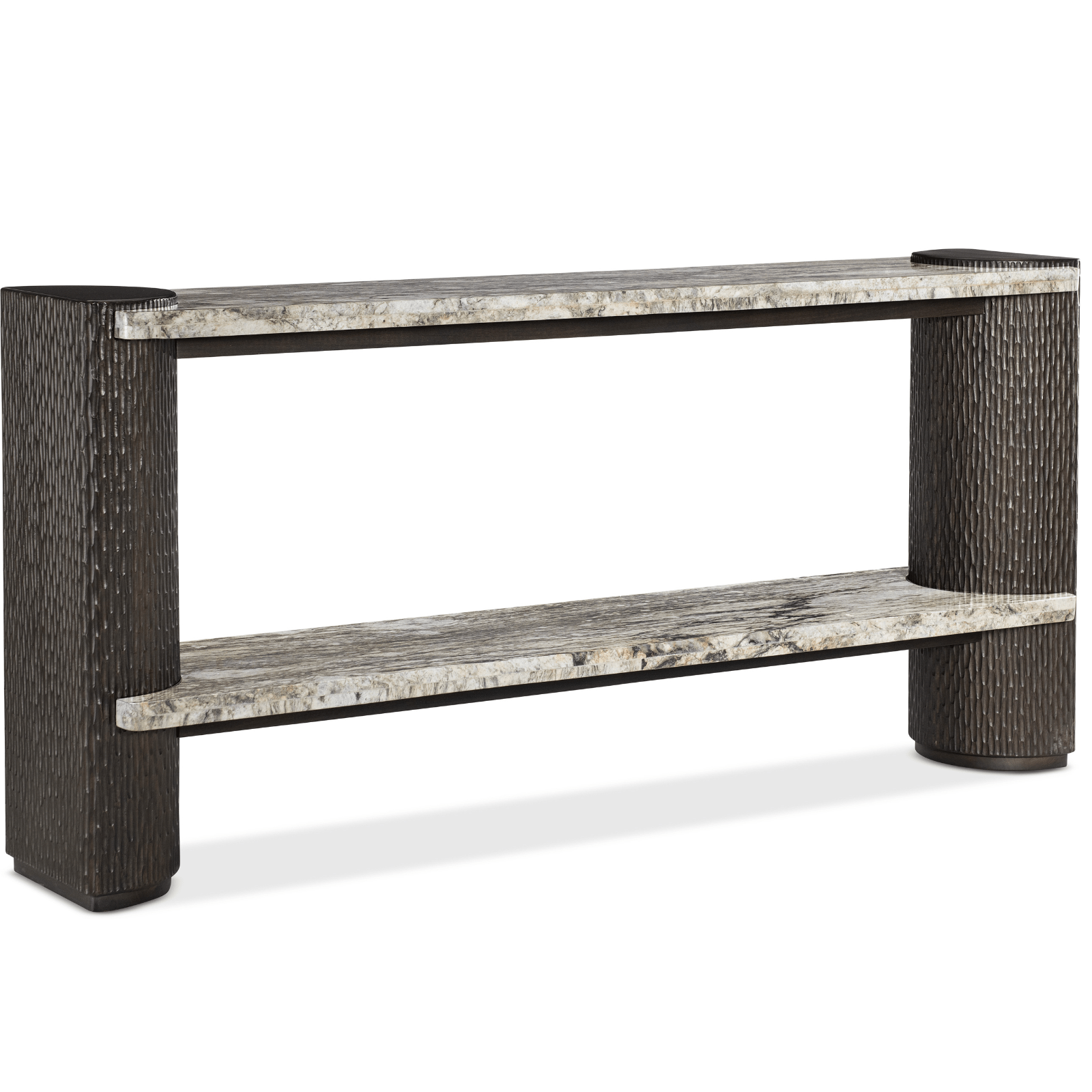 With stunning geode-patterned reverse painted glass doors in a black and ivory pattern, accented by silver metal legs, the Rockee Four-Door Credenza takes organic style to the next level. There’s one adjustable shelf behind each pair of doors. Crafted of Oak Veneers with Glass and Stainless Steel, the chest has a ventilated back panel with wire management and a power supply. Come closer to Melange, and you will discover something unexpected. An eclectic blending of colors, textures, and materials in a vibrant collection of one-of-a-kind artistic pieces, Melange is meant to inspire you and fuel an experience of self discovery, inspiring a renaissance in your home. Each piece of Melange has its own story. The designs are versatile and timeless, easily transcending from one life stage to the next, from home to home and generation to generation.
