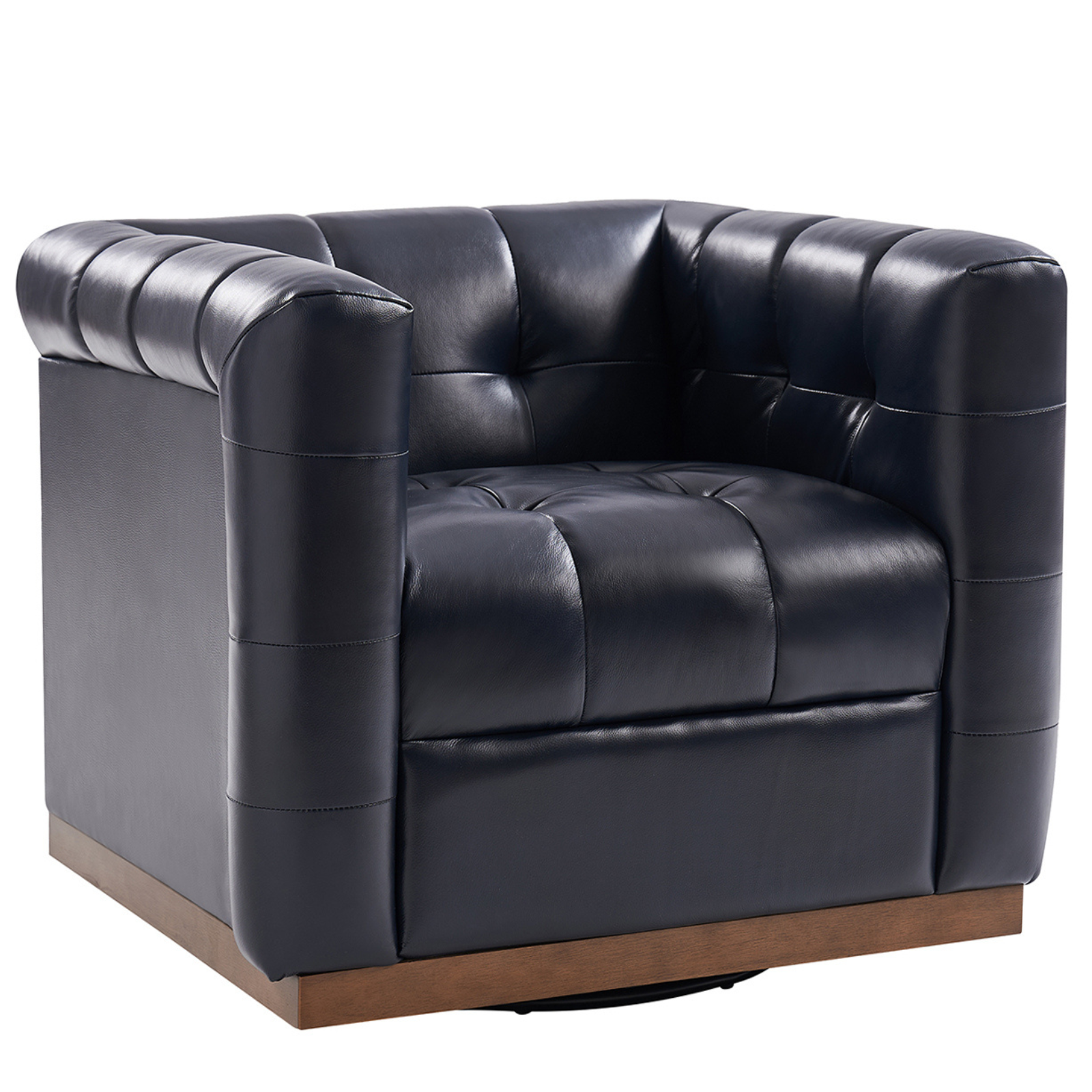 Arnold Genuine Leather Swivel Club Chair in Navy