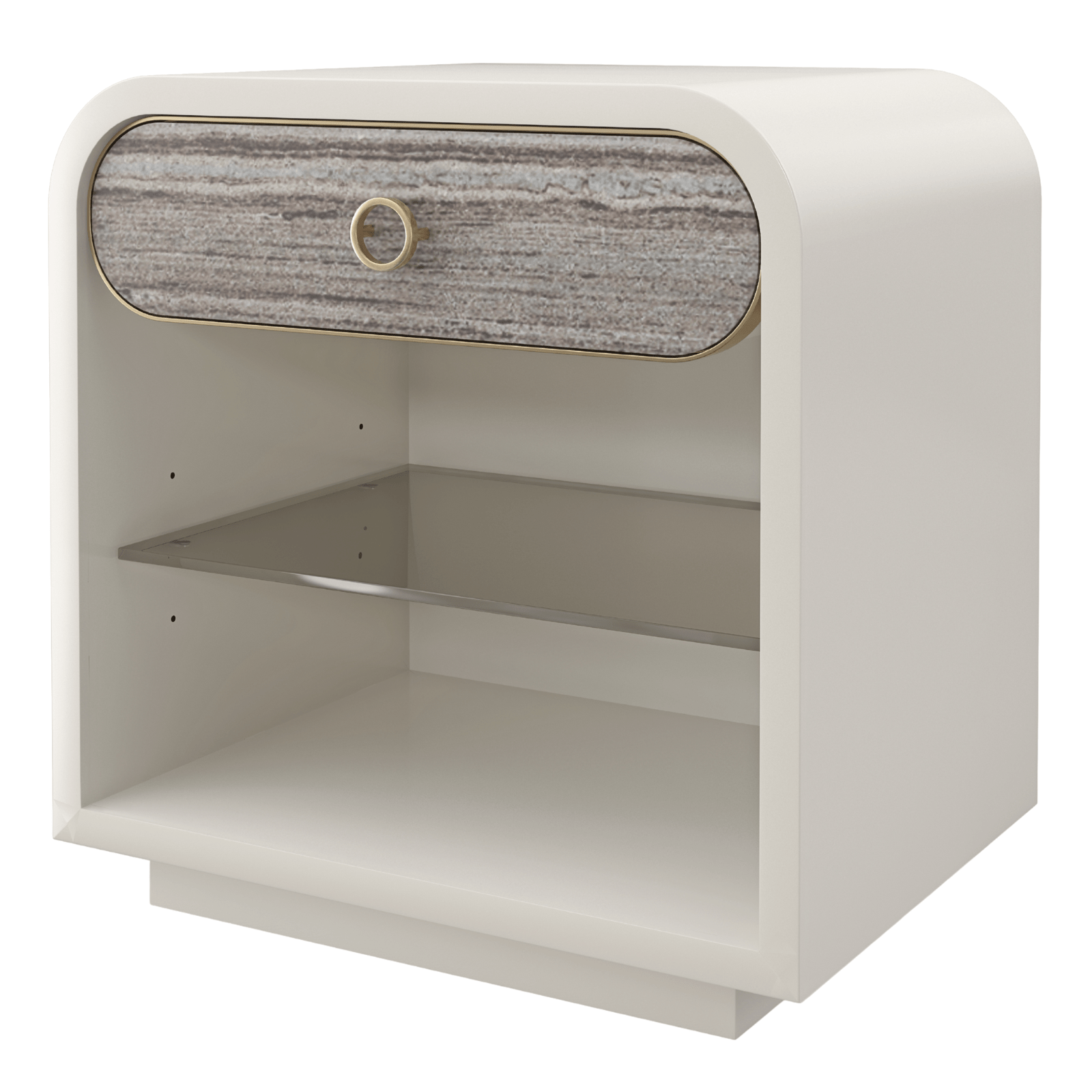 Bring both style and function to your bedroom with this modern nightstand. Featuring a beautifully arched tabletop and elegant curved design, it adds a soft, sophisticated touch to any space. The solid wood veneer finish and sturdy solid wood legs offer lasting durability and a high-end look. Three spacious drawers provide ample storage for bedside essentials, while the built-in charging station with USB ports keeps your devices powered and within reach. Easy to assemble, this nightstand requires only the legs to be attached, making setup quick and hassle-free. A perfect blend of convenience, craftsmanship, and contemporary design.
