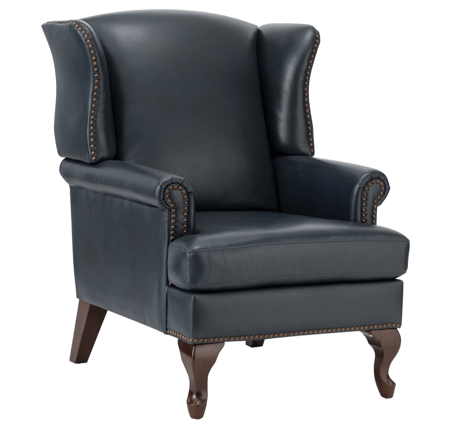 Baptist Armchair in Navy with Cabriole Legs & Nailhead Trim