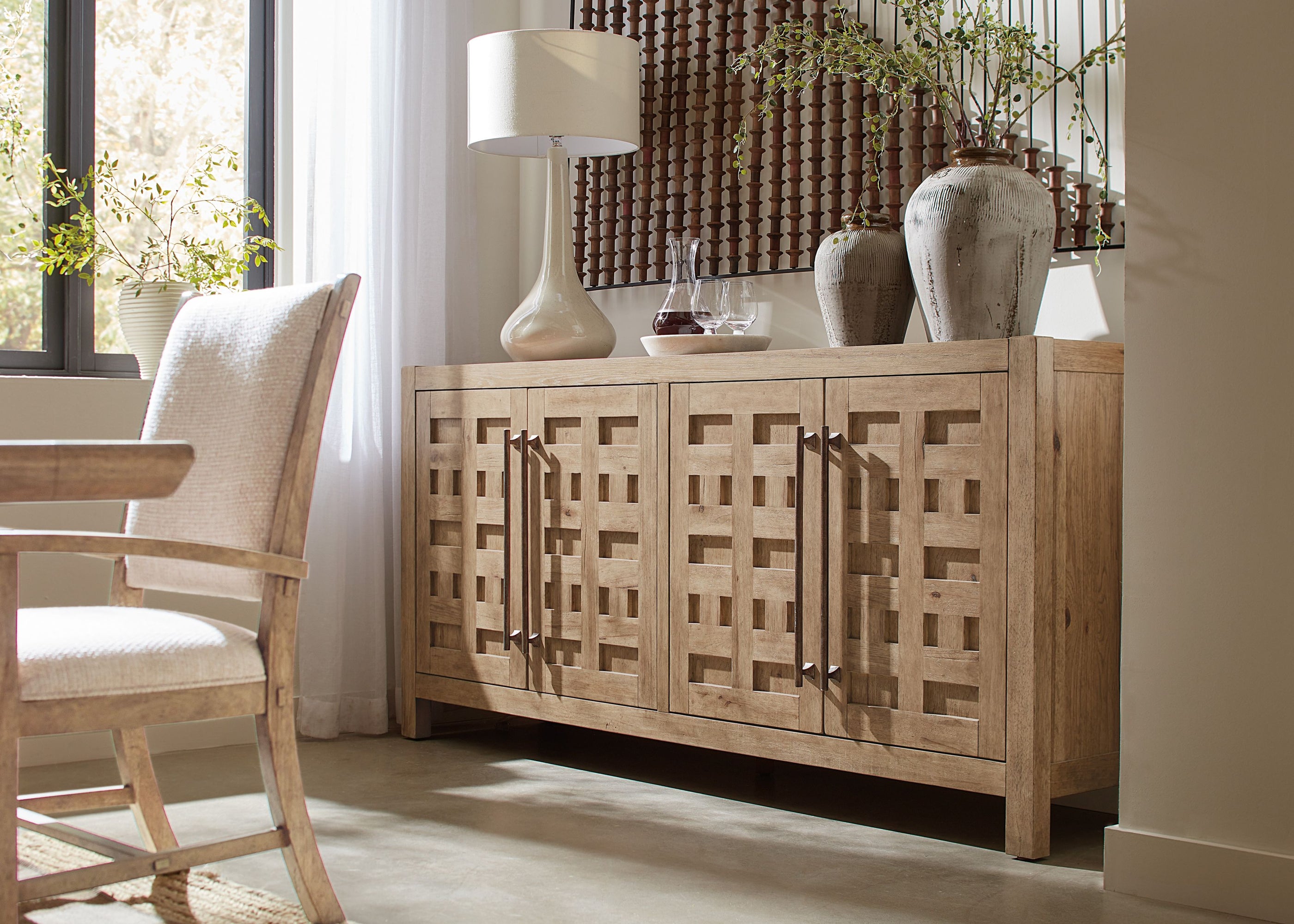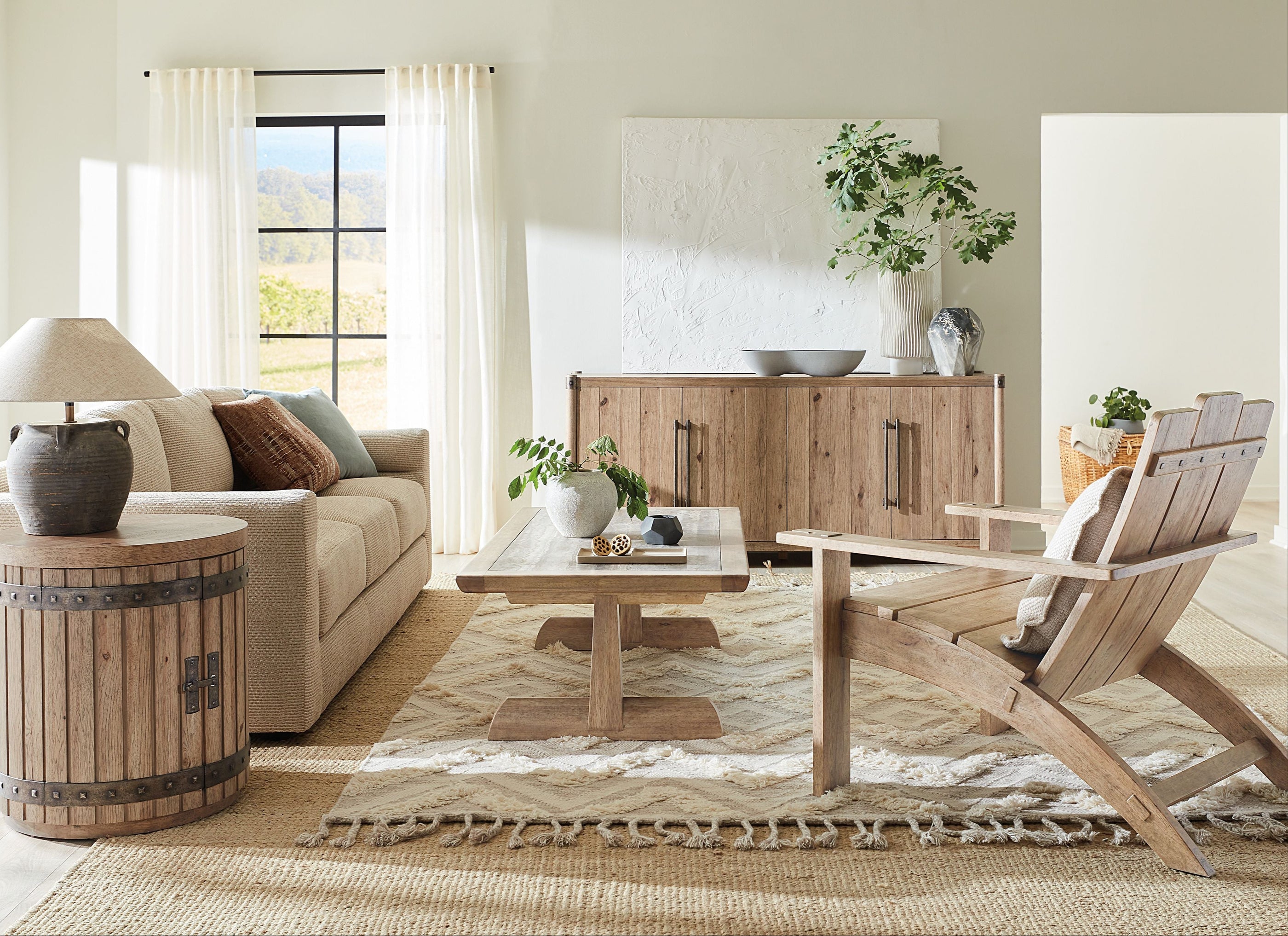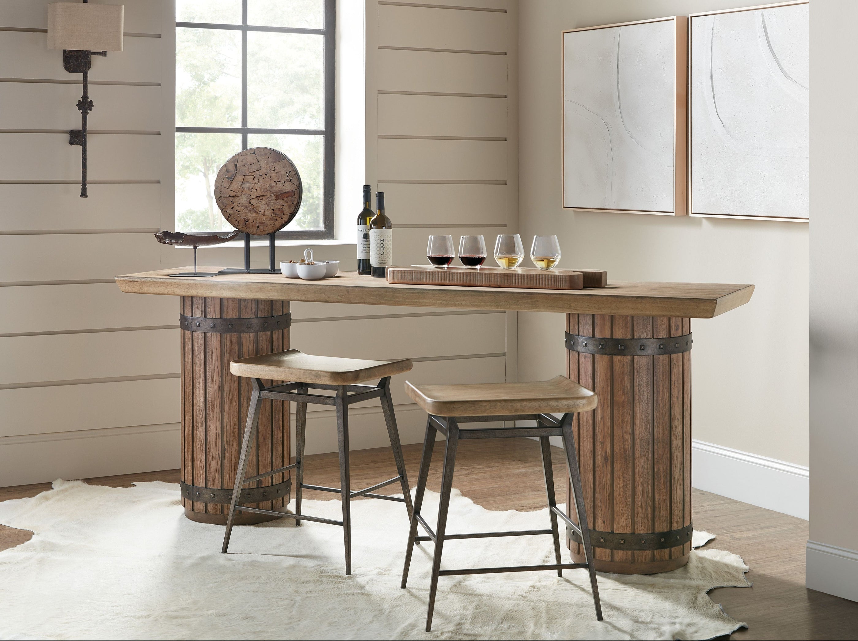 Hooker Furniture's Vineyard Row is inspired by the organic beauty of California wine country, the whole home collection embraces the rustic charm and organic aesthetic of Sonoma and Napa Valley. Crafted with Pecky Hickory veneers, it is available in the main finish, Sonoma, which offers a light and airy vibe, reminiscent of the crisp white wines of the Sonoma region.