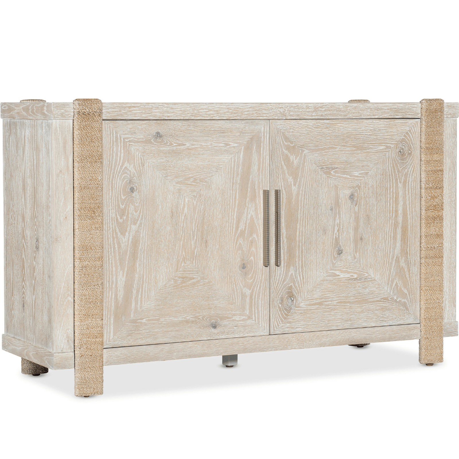 - Finish: The finish is a deep, brown called Midnight. Hardware is a brushed brass pull. Distressing includes wire brushing.