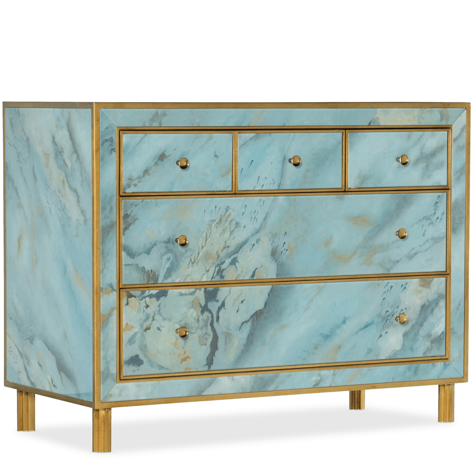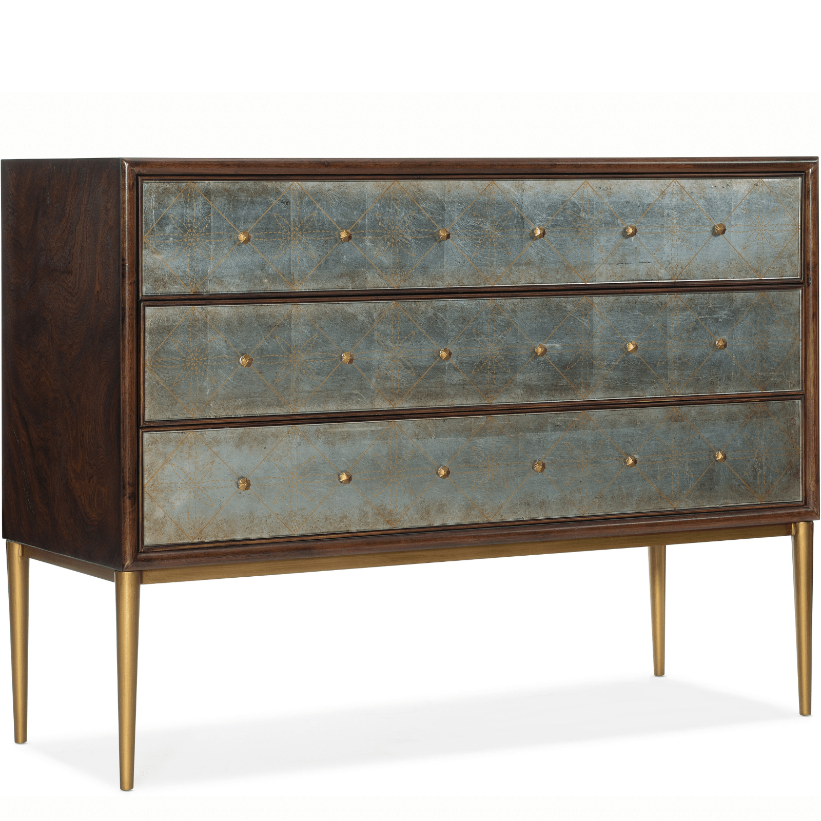 A showstopping accent, the Holy Cow Chest features stitched hair-on-hide leather drawer fronts set in a silver metal frame. With three soft-close drawers, it combines bold material texture with refined function—perfect for eclectic luxe interiors. Come closer to Melange, and you will discover something unexpected, something far more than an accent furniture collection offering a multitude of finishes. An eclectic blending of colors, textures and materials in a vibrant collection of one-of-a-kind artistic pieces, Melange is meant to inspire you and fuel an experience of self-discovery. Melange can provide that spark needed to begin the transformation of a room and a renaissance in your life. Each piece of Melange has its own story. The designs are versatile and timeless, easily transcending from one life stage to the next, from home to home and generation to generation.