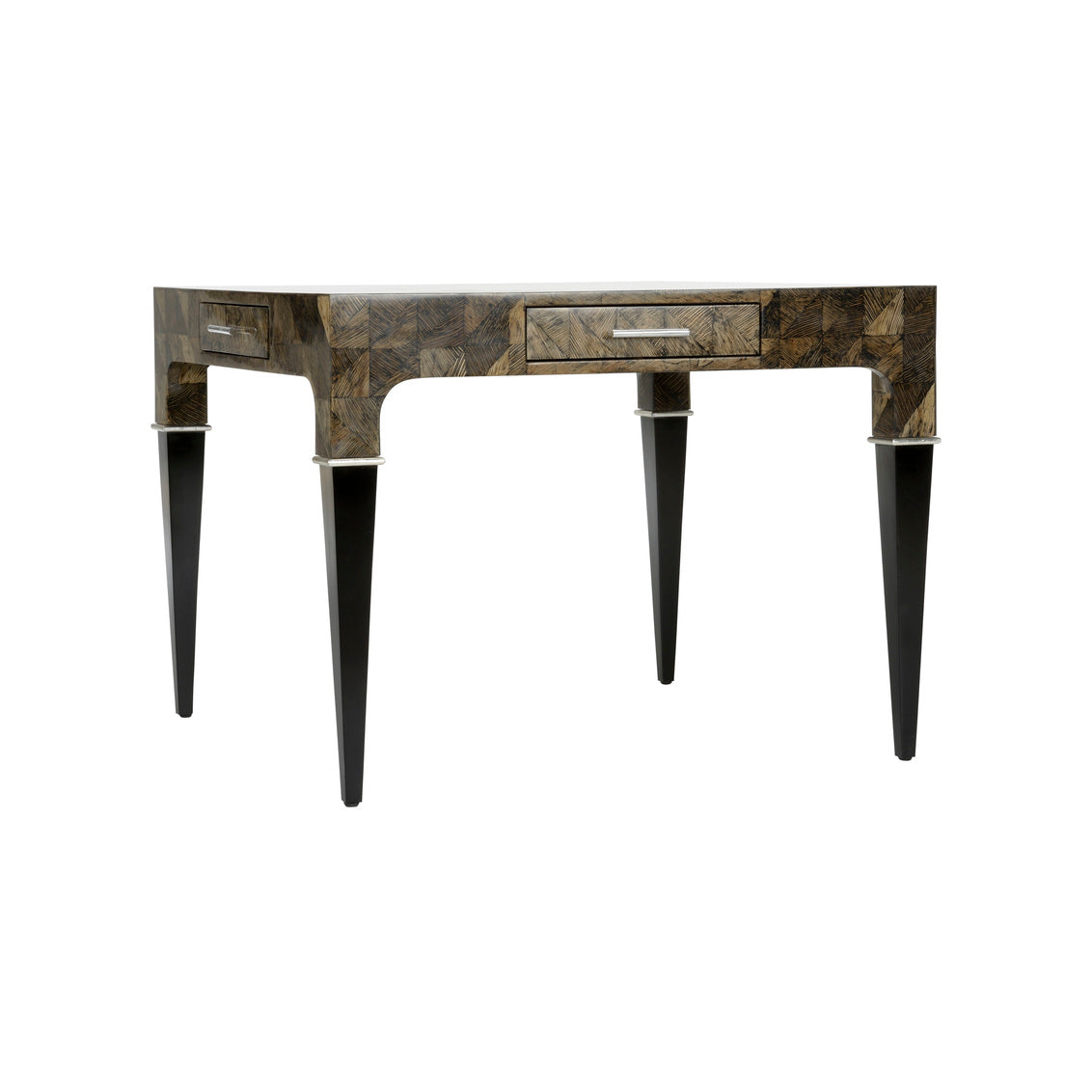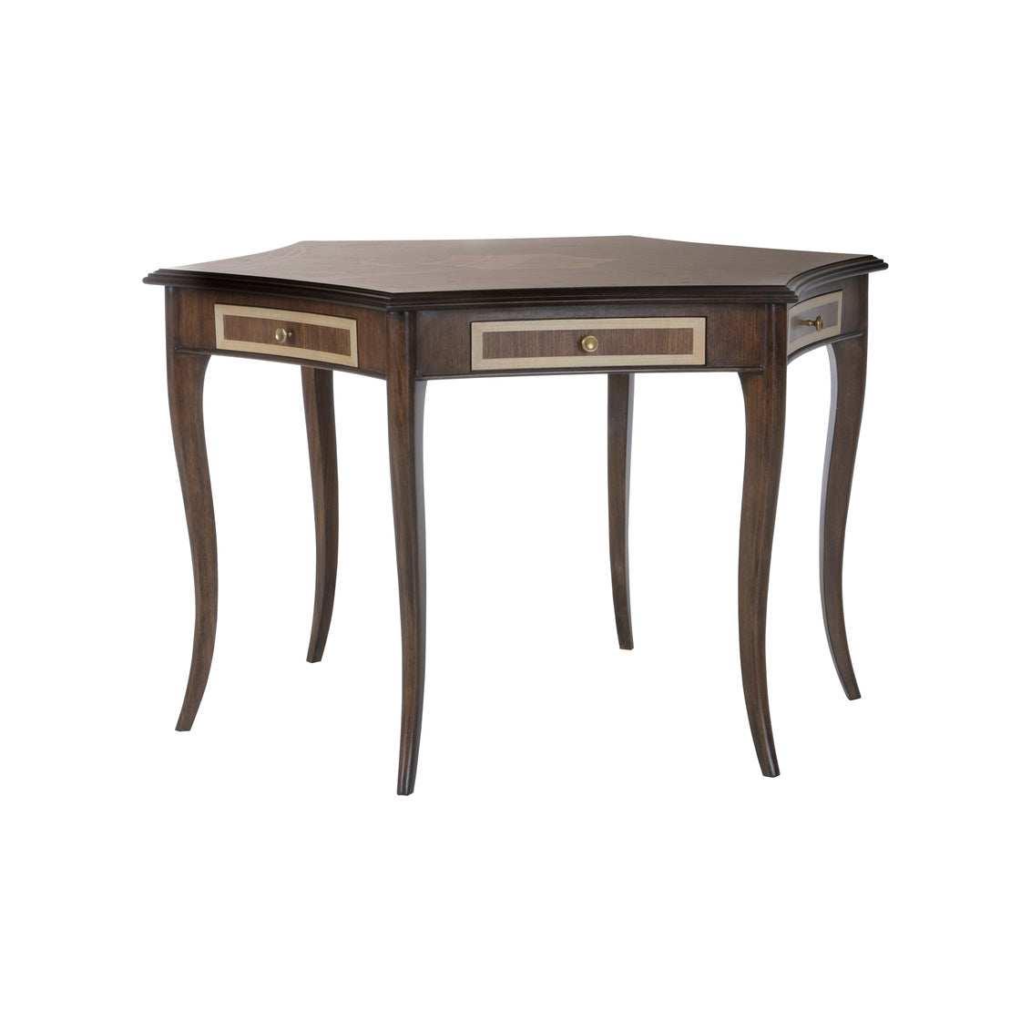 • Finish: The finish is a deep, brown called Midnight. The base of the table is brushed brass metal. Distressing includes wire brushing.