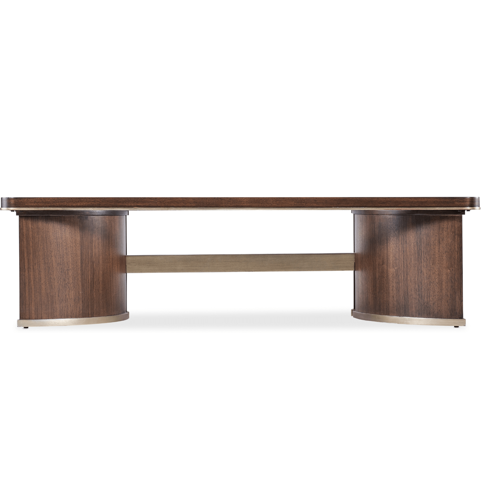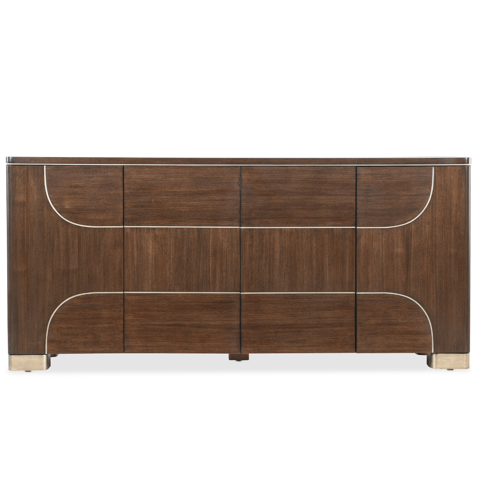 - Finish: Dark walnut finish accented with champagne trim and a round knob