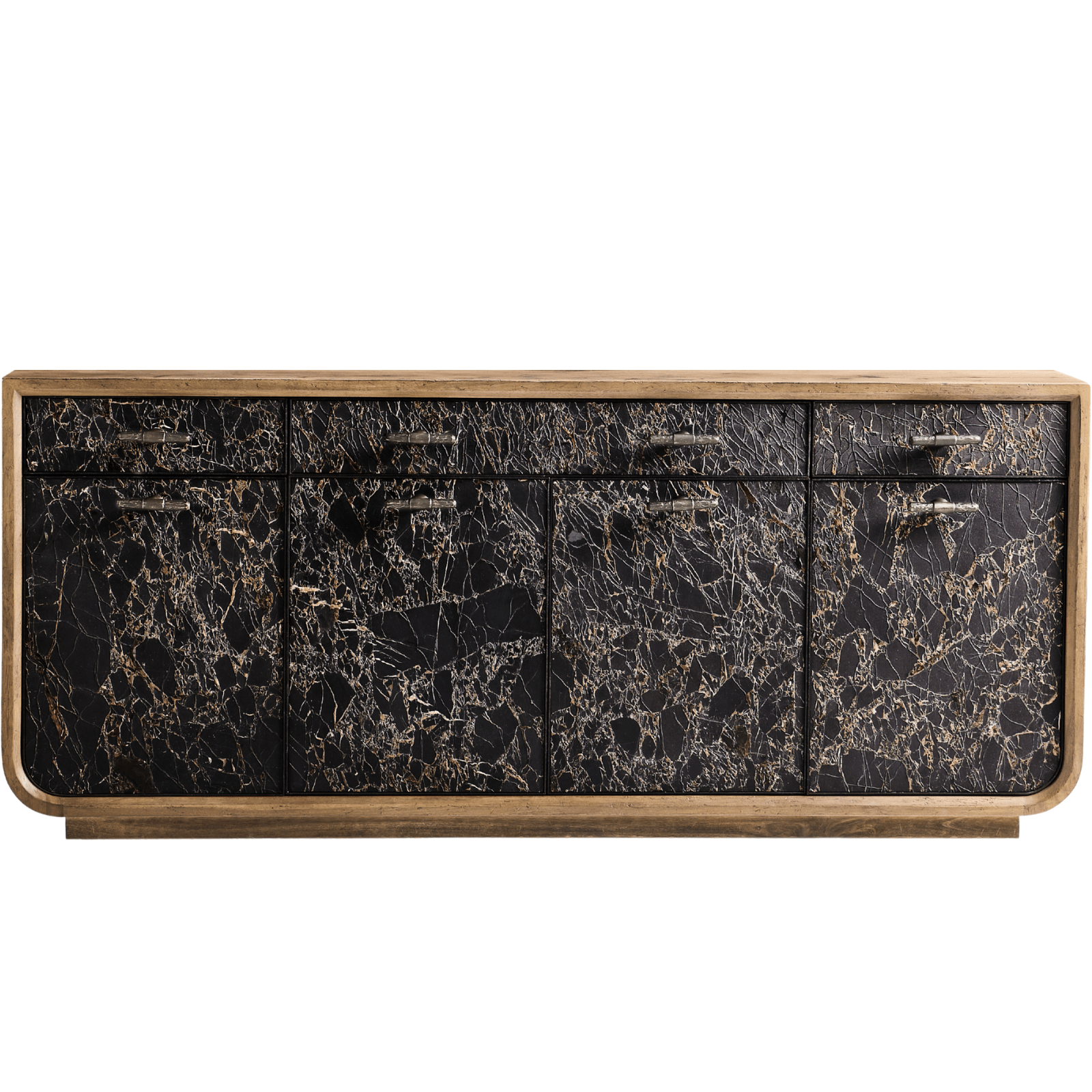 Hooker Furniture's Vineyard Row is inspired by the organic beauty of California wine country, the whole home collection embraces the rustic charm and organic aesthetic of Sonoma and Napa Valley. Crafted with Pecky Hickory veneers, it is available in the main finish, Sonoma, which offers a light and airy vibe, reminiscent of the crisp white wines of the Sonoma region. The Napa finish, featured on select pieces, exudes a darker aesthetic inspired by the robust red wines of Napa Valley. Designed to work within a variety of lifestyles and geographies, the light finish with the dark accent finish allows it to transition between rustic settings as well as more refined environments. Influenced by Spanish missions, quaint bungalows and local architecture, Vineyard Row seamlessly blends earthy elements with sophisticated design. Details including high-low veneer planking, rustic hammered metal bar hardware, metal stretchers and seeded glass add to its authentic style.