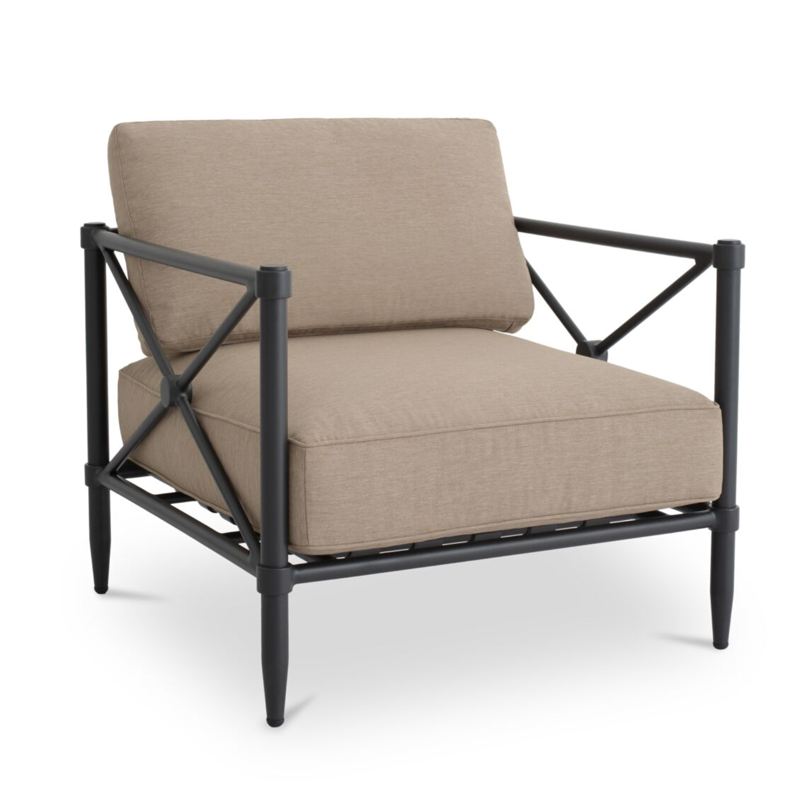 - Crafted construction: Built on a durable aluminum frame with PVC webbing suspension, finished with tapered legs to soften the silhouette.